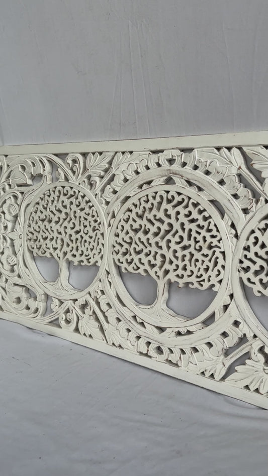 Decorative Panel "3 Tree of Life" - White wash - 100 x 40 cm