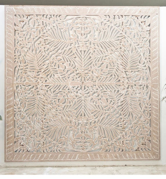 Giant Wood Wall Art / Full Bed Headboard "Seruni"- White - [US-stock]