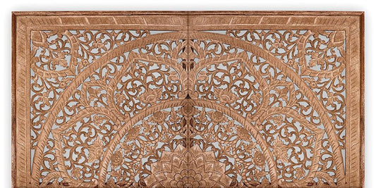 Half cut Carved Bed Headboard "Manusa" - Natural - USA