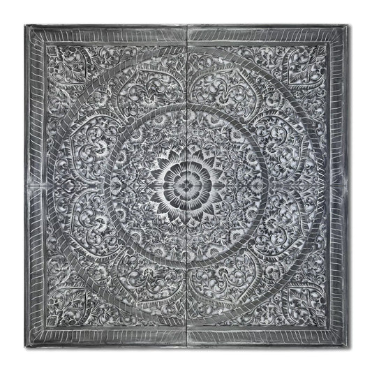 Giant Wood Wall Art / Full Bed Headboard "Manusa" - Silver - USA