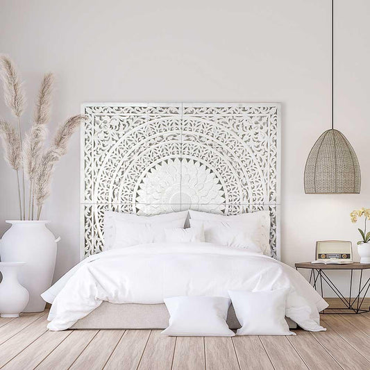 Giant Wood Wall Art / Full Bed Headboard "Seruni"- White - [US-stock]