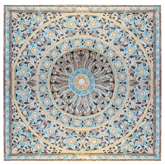Carved Full Bed Headboard "Dahayu" - Blue Wash - USA