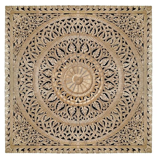 Carved Half Cut Bed Headboard "Sumber" - [US-stock]