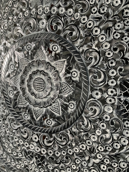 Carved Full Bed Headboard "Peony" - Monochrome