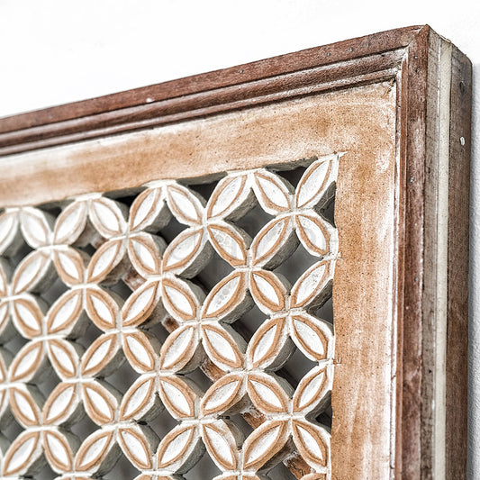 Carved Bed Headboard "Jantung" in Antic Wash