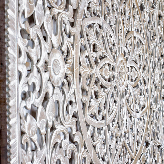 Carved Bed Headboard "Manusa" - White