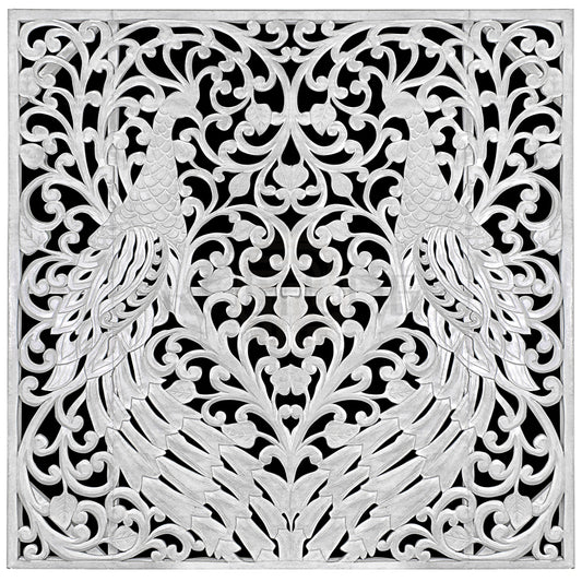 Carved Bed Headboard "Peacock" - White