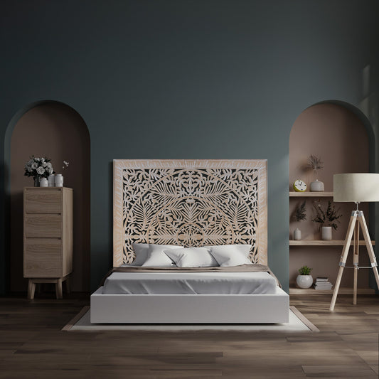 Carved Bed Headboard "Mahkota" - Natural - [US-stock]