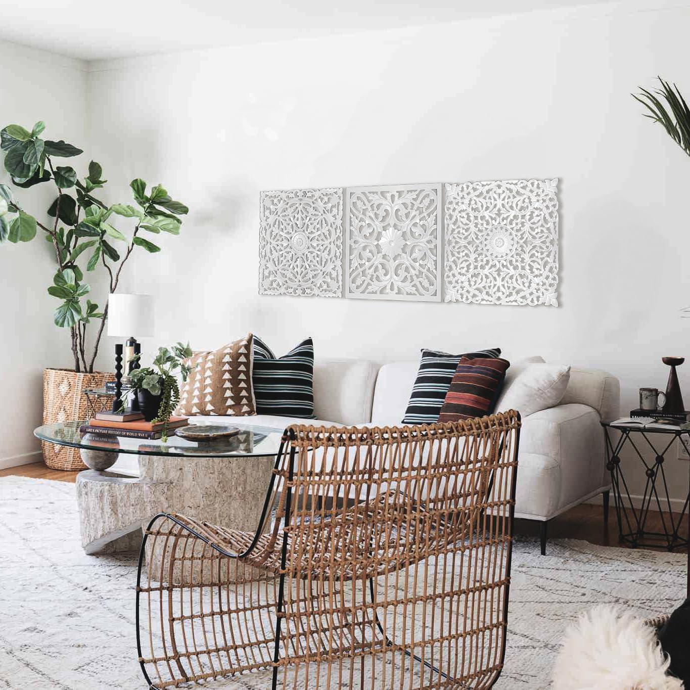 Set of 3 Decorative Panels "Pererenan" 20x20 inches each