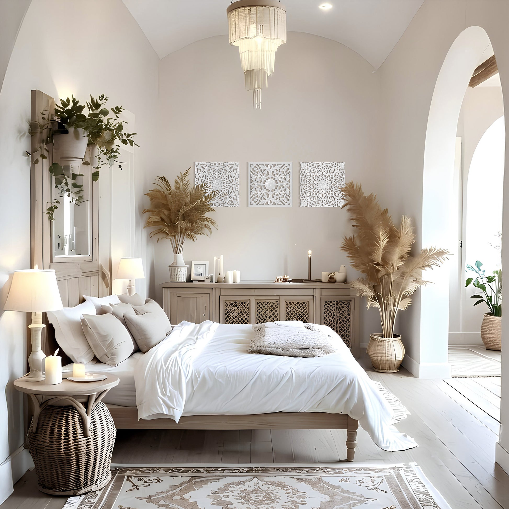 Crafted by skilled Balinese artisans, the Set of 3 Decorative Panels "Pererenan" is a masterpiece of tradition and craftsmanship. Each piece is 100% handmade, intricately carved using simple tools—no machines—ensuring unmatched detail and uniqueness. Rooted in spirituality and beauty, this headboard brings the essence of Bali into your home.
