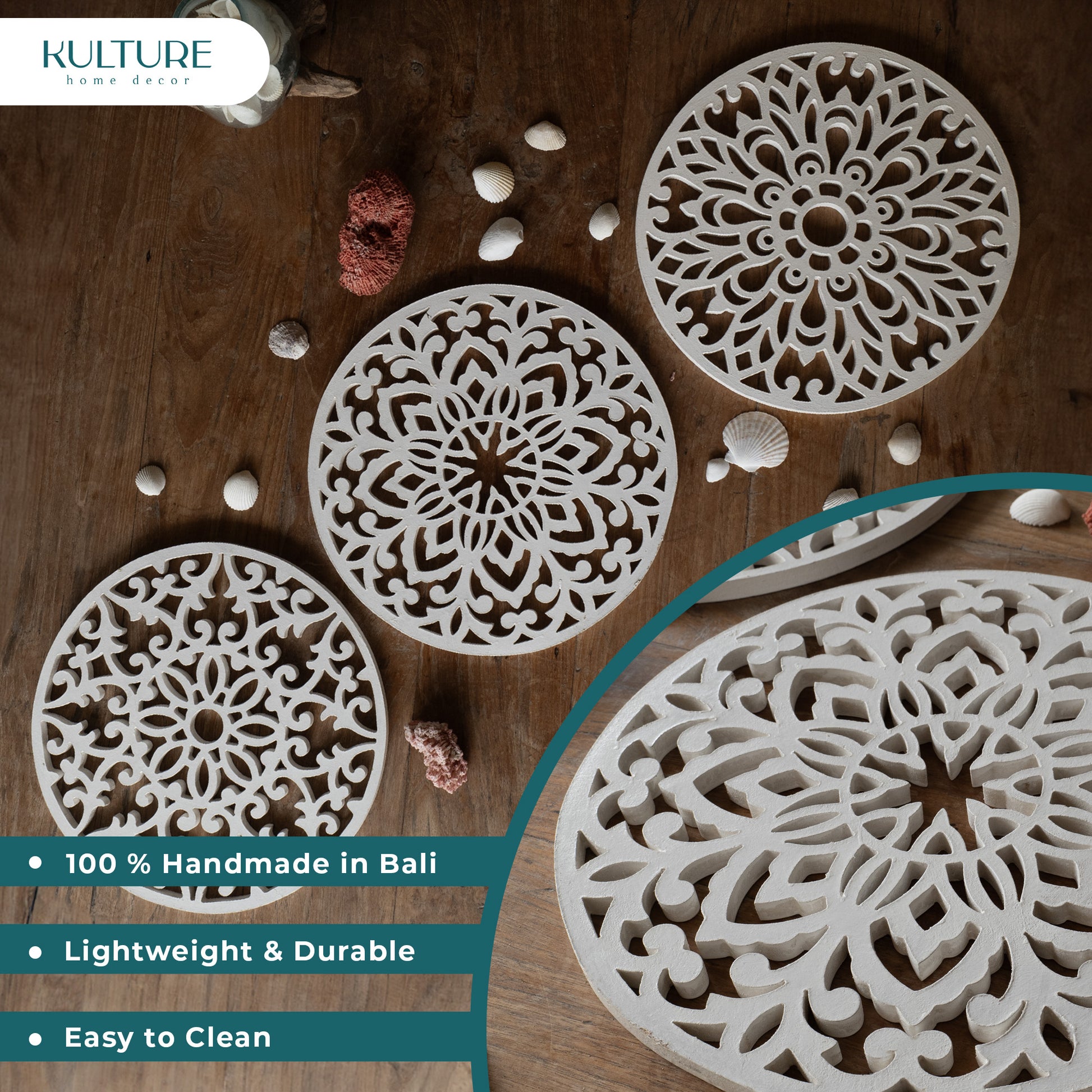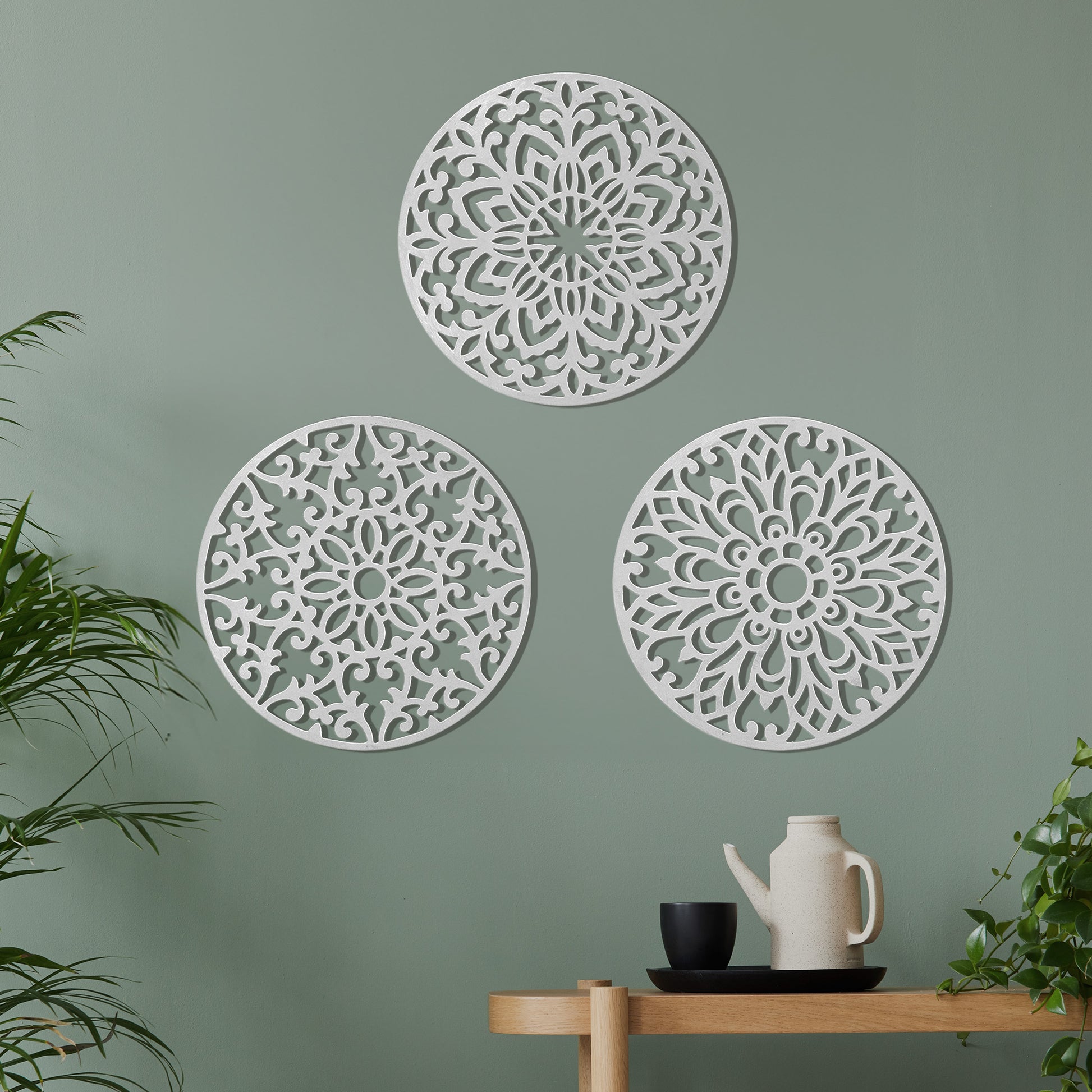 Decorative Round "Mandala Set of 3" - White