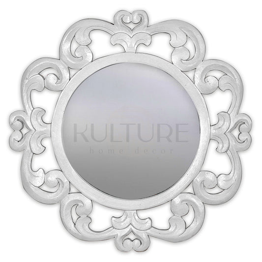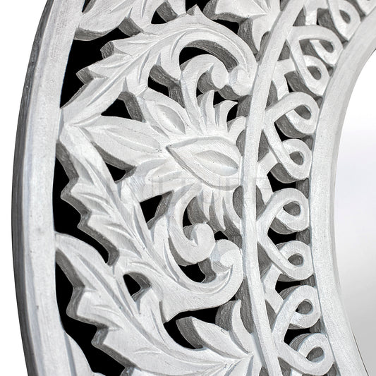 Hand Carved Mirror "Wanasari" in White Wash - 70 cm