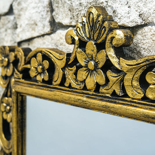Hand Carved Mirror "Nirmala" in Gold Brass - 180 cm