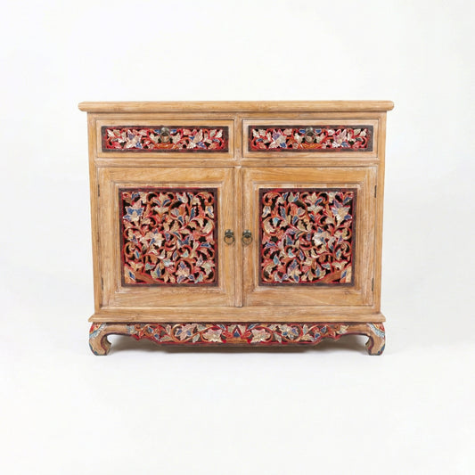 Wooden Carved Console Cabinet With Storage "Sela" - 100 cm