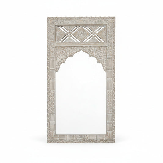 Hand Carved Wooden Mirror 'Sekarupa' - White Wash - 180 x 90 cm