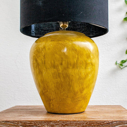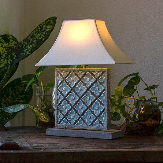 Carved Table Lamp 'Luwih' - Blue & Brown