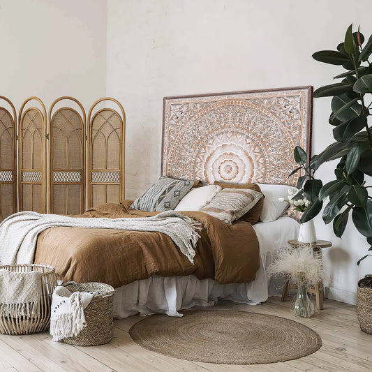 Carved Bed Headboard "Embun" - Natural - USA