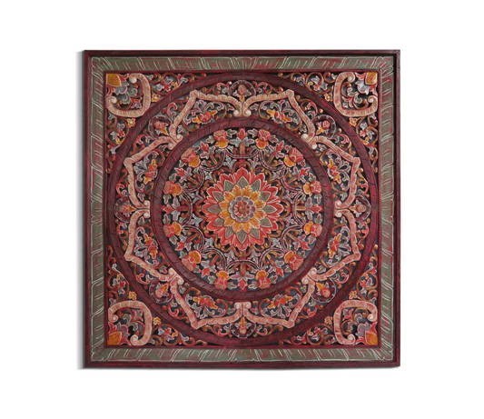 Balinese Queen Size Carved mandala full bed headboard Manusa in Red - USA
