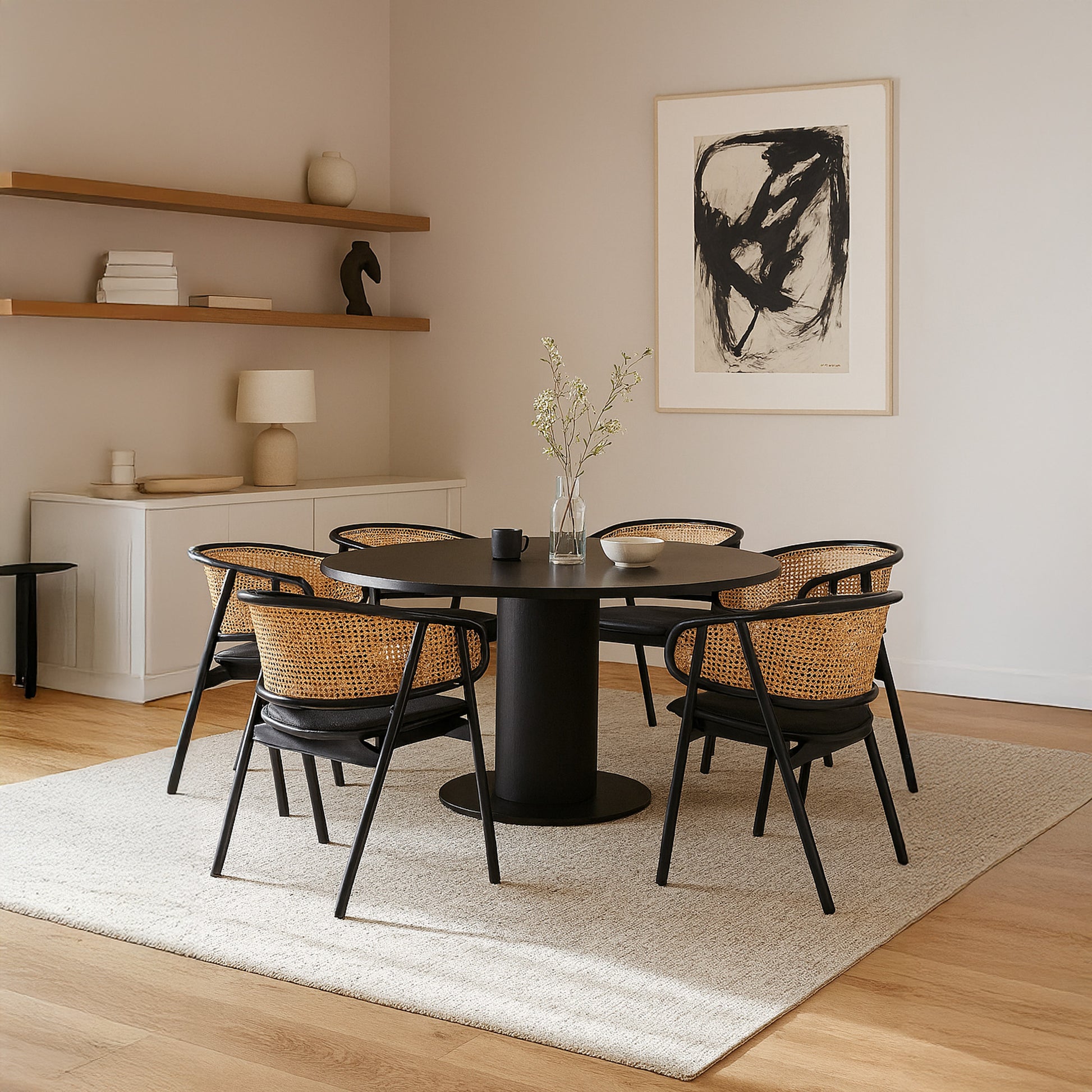 A contemporary reinvention of a popular mid-century design, the Cane Armchair hosts vibrant ash wood and curved contours for an eye-catching dining room addition.