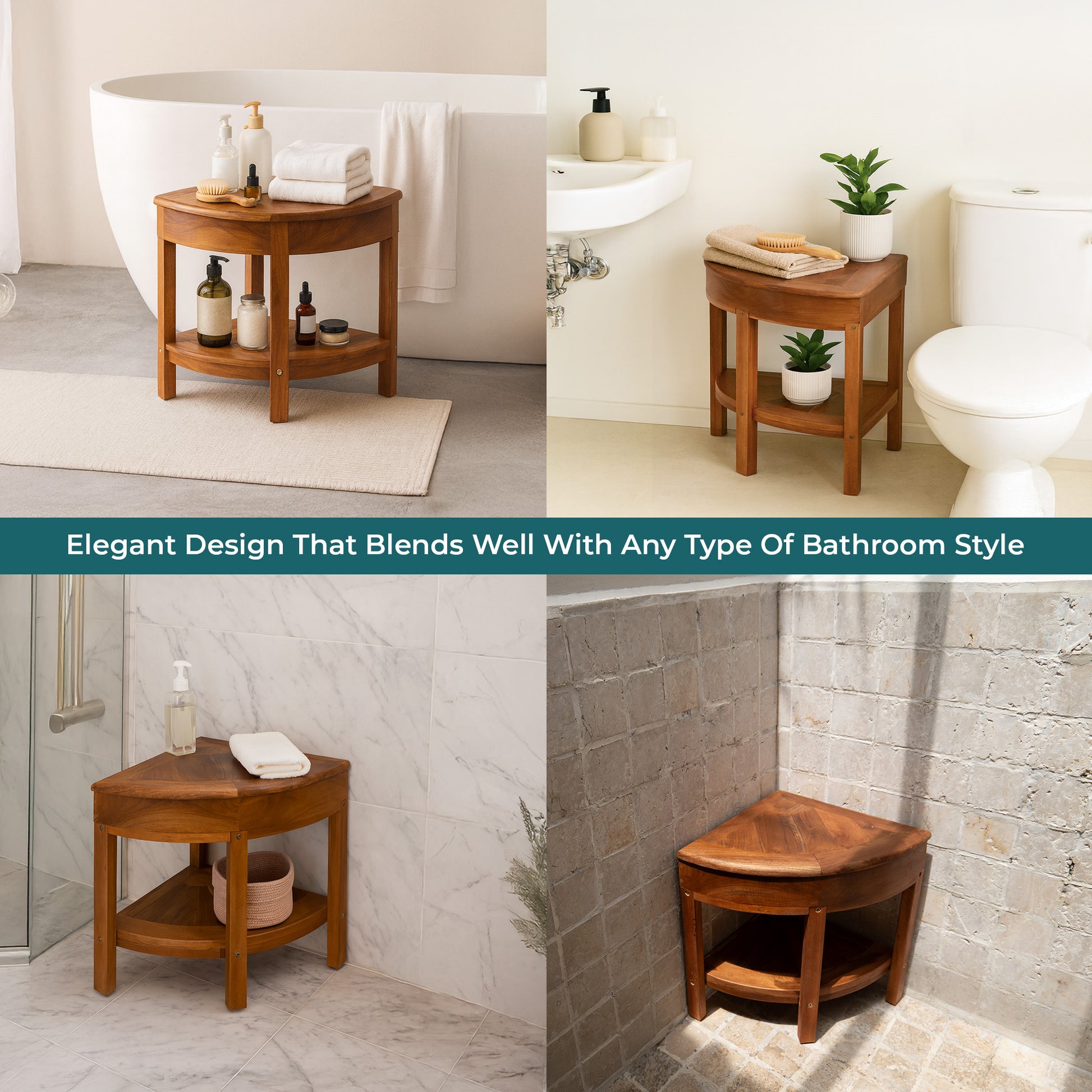 New Teak Shower Corner Bench [with Extra Waterproof Storage] 16 inch - US