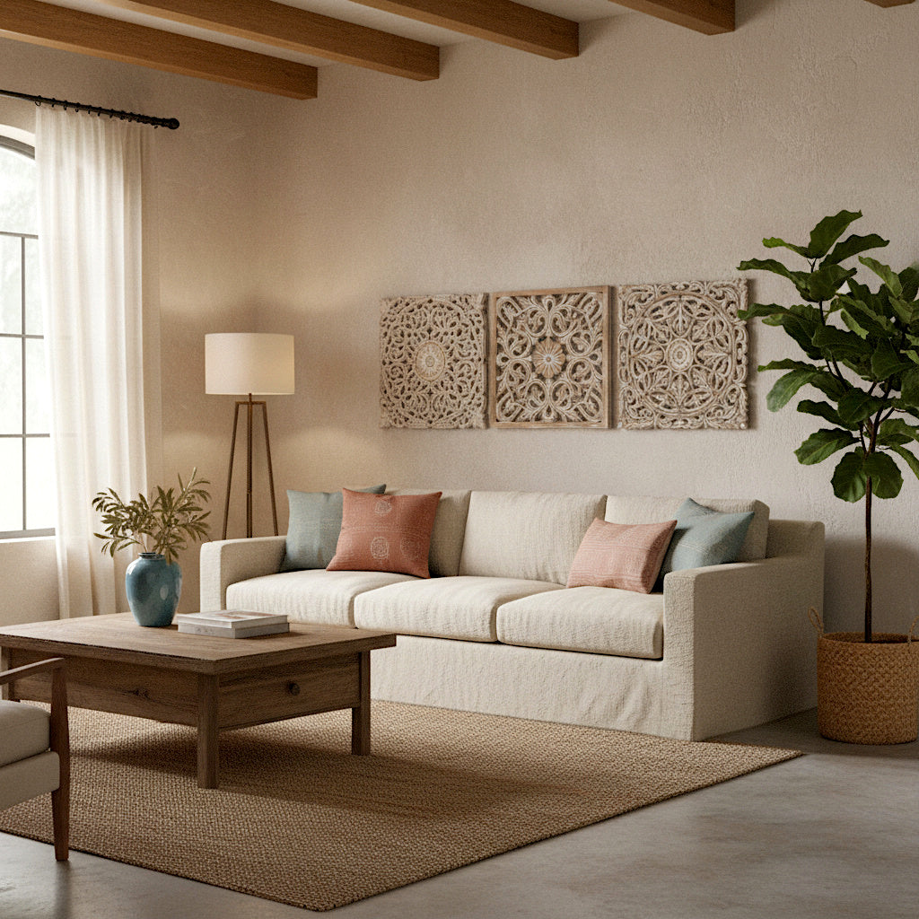 Set of 3 Decorative Panels "Pererenan" - Antic Wash - 50 cm